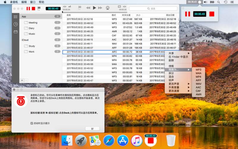录音从未如此简单! 数千万用户的共同选择。 功能: • 与选择的音频或视频混合录制; • 与正在播放的音乐混合录制; • 在计划的时间点开始录音; • 只在说话时录音; • 升高录音音量; • 通过蓝牙耳机录音。 iCloud Drive、提醒、时刻、日历、废纸篓。 修剪、变声、制作铃声、调整速度、合并、混音、拆分。 MP3、M4A、AAC、MP4、CAF、AIFC、AIFF、WAV、AMR