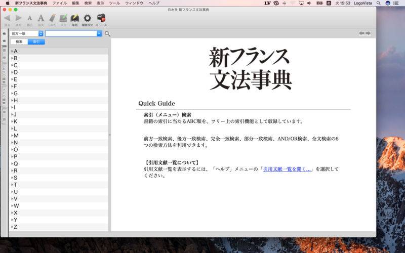 Mac App Storeで販売しておりますLogoVista電子辞典は製品ごとに専用の辞典ブラウザで起動する為、他のLogoVista電子辞典と串刺し検索などの連携機能はご使用いただけません。予めご了承ください。