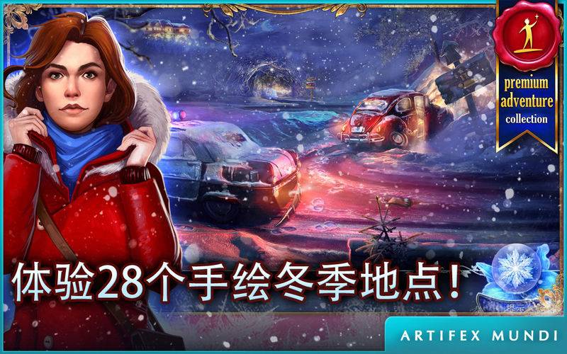 • 在雪白的情节背景中有超过30个吸引人的手绘隐藏物品场景!