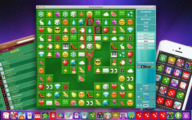 尽可能快地找出并删除相同的表情符号。你多快可以能拿完所有的表情符号? 特别奖: 金牌 (~ 4:00) 银牌 (4:01 ~ 6:00) 铜牌 (6:01 ~ 10:00) 游戏极具挑战性, 成千上万的人每天都在玩这一游戏。 立即下载并开始你的挑战吧。 祝你好运!