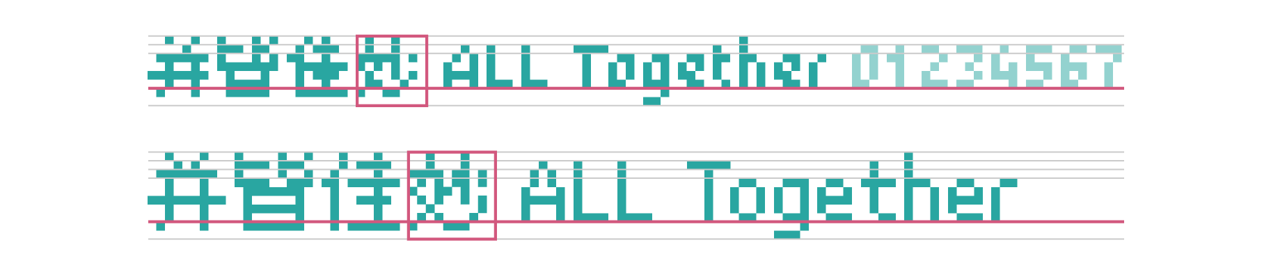 拉丁字母的大小是根据汉字大小精心推敲而来的。这样的设计可以让汉字无论和大写字母还是小写字母混排时,都能获得最和谐的效果。