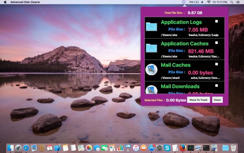 Advanced Disk Clearer gives a easy handy tab to clear users directory,user can delete or Trash the following folders based on user permission.