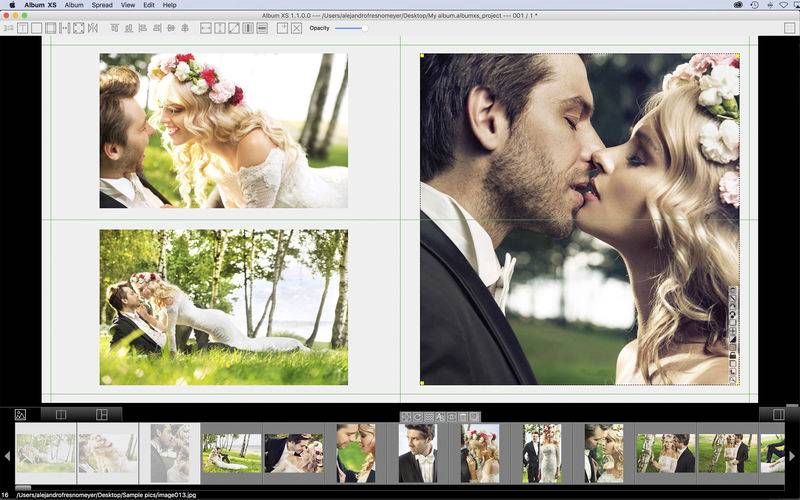 Unique album software allowing to design all spreads in a single view using grid mode, swapping images between spreads.
