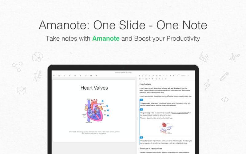 Amanote improves note taking when slides (PowerPoint) are used during presentations, lectures and conferences.