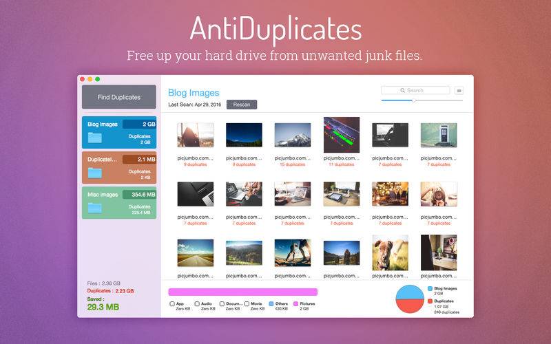 AntiDuplicates is an essential tool for your Mac to free up your hard drive from unwanted junk files. This app will help you find multiple copies of the same files which stay hidden in different locations. AntiDuplicates gives you an easy interface from where you can add folders and the app will start scanning for duplicate files. The search results will be laid out in an intuitive interface from where users will be able to choose and selectively delete multiple copies of the same file.