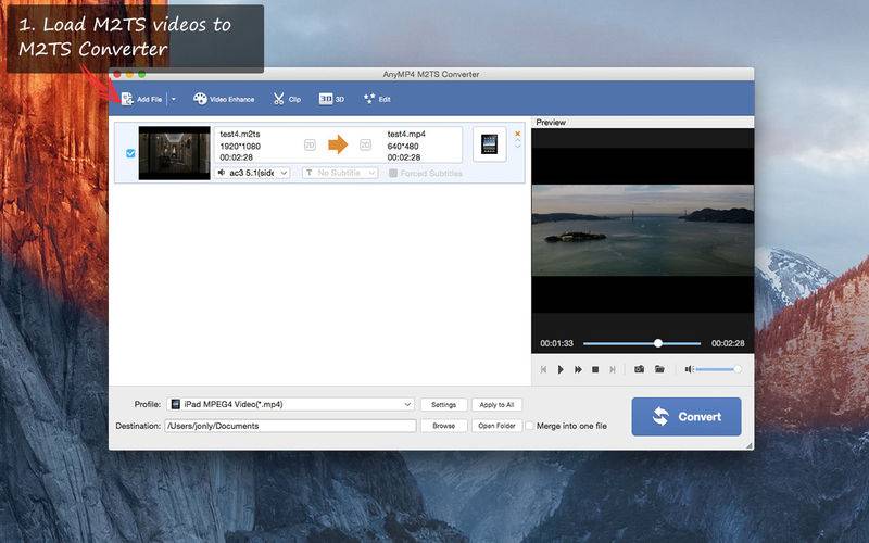 AnyMP4 M2TS 转换器帮助用户转换 M2TS AVCHD 视频到其他流行的视频, 使它非常简单的导入 M2TS 文件到Final Cut Pro, iMovie, Avid Media Composer,以超快速度和原始视频质量。它能够将 M2TS 视频转换为 MP4、MOV、M4V、MPEG、MKV、AVI、WMV 和高清视频, 如 TS、hd MP4 等。此外, 这个多功能的 M2TS 转换应用程序能够从 M2TS 文件中提取音频文件。因此, 您可以自由享受在多个数字设备上转换的视频和音频文件, 如 iPhone 7/SE6/6 plus/5s/5c/5/4s, ipad 4, ipad 的Air/迷你 2/迷你, ipod nano 7, ipod touch5和更多的完美性能。
