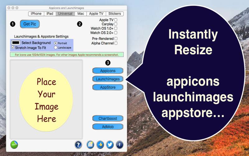 Do you want to save time resizing your app icons, launch images and app store screenshots? "I love this app. Its been an excellent time saver for us..."-Devtap-5 stars "Love Love Love..."-eclicker-5 stars Why we are different? ...app icons ...launch images ...appstore screenshots ...Xcode xcassets friendly ...alpha channel support ...stretching ...background fill ...Apple TV ...Stickers ...and more We take seconds to resize/replace all our app icons and launch images. Now you can generate and replace all the app icons, launch images, and app store screenshots very quickly starting with any size image. This app can even attach to your Xcode project AUTOMATICALLY (we create the Contents.json). Replacing icons and images is a snap. For a change in the graphics or supported hardware, it is just a simple re-create directly in the assets folder and takes a few seconds (no more matching required in Xcode). A small annoyance gone so you can focus more time on the design/redesign/improving.