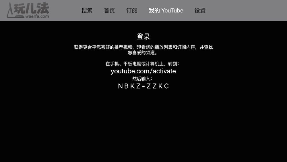 上面关于用遥控器选择字母进行输入的诸多不便想必大家都有所了解了,所以一些 App 做了一些改进,允许你配合其他设备进行输入,比如 Youtube