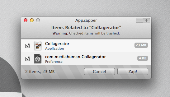 AppZapper是一款干净的Mac程序卸载工具,支持拖拽操作,批量卸载功能,在卸载程序前他会将程序中所有相关的安装、配置文件搜集起来一并清除,最后配合“咔嚓”一声的爽快音效,让程序卸载变得非常带劲。