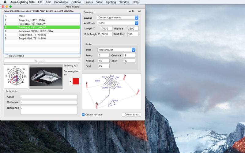 Area Lighting Calc works both in metric or imperial units, runs on Apple computers running OSX, using full OpenGL for rendering.