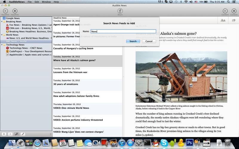 News should be audible. You can read it or the computer reads the news for you. It will read the headline news or any selected story. If you like the story, you can share the link with your friends on Facebook with one click. This app is full feature RSS reader with TTS.