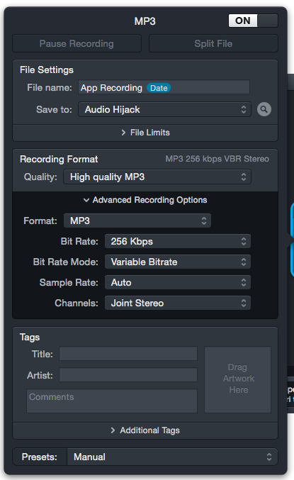 OK 了,一个的 Workflow 完成了,现在打开网页,按下 Session 窗口底部左下角的红色按键就能进行录制了,录好的音频可以在 「Recordings」里预览,或是添加 ID3 标签,这样看来,整个音频录制过程会非常流程化,使用习惯后你会发现操作起来效率非常高!