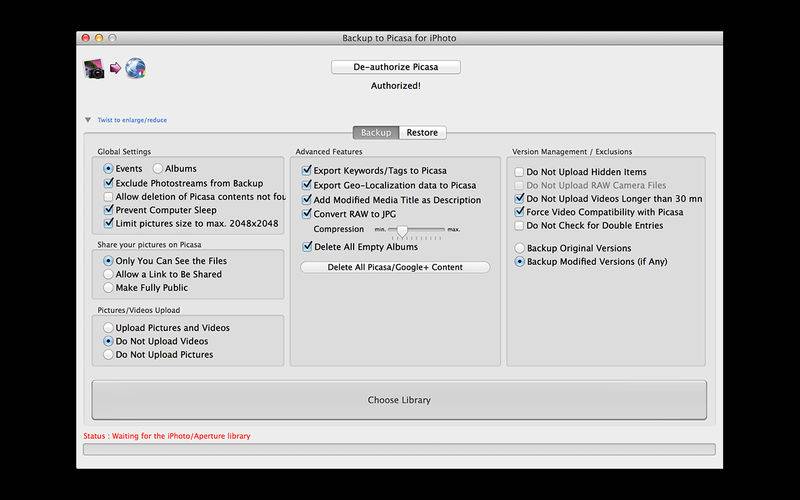 2. Point to your iphoto/Aperture Library (iphoto version 9.x or above)