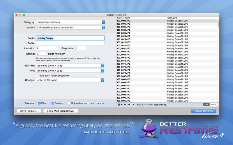 "Arguably the best file renaming utility on the market" - Mac OS X Power Tools