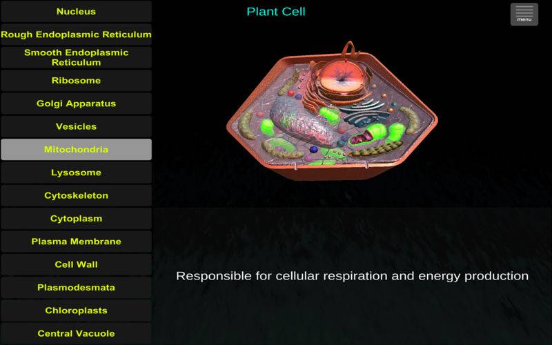 Cell biology tutor teaches students cell organelles for Animal, Plant, Fungi and Bacterial cells. The app contains a study section which highlights each organelle and provides a definition of the organelle function.