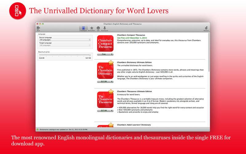 8 comprehensive English dictionaries and thesauruses available for in-app purchase.