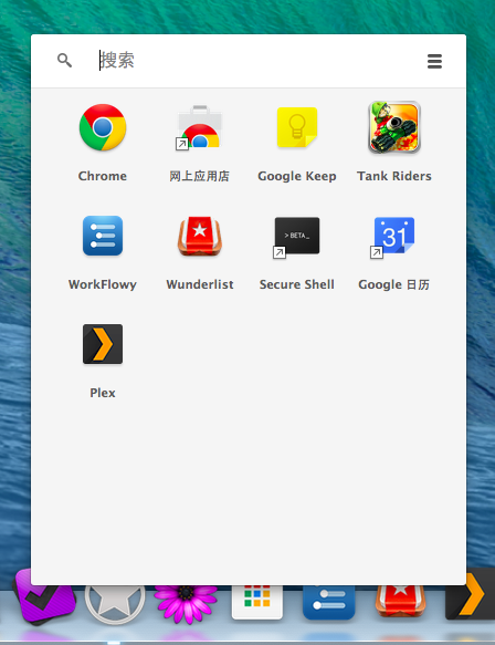 我们可以将 App Launcher 拖入Dock,随时调用里面的应用,也可以将他们直接拖入 Dock 使用,这些离线应用的优点是他们能够自动更新版本,当你在其他电脑上同步 Chrome 数据时,他们会自动显示出来,甚至在 Spotlight 里也可以像其他 Mac 软件那样搜索他们。