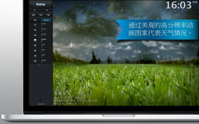 • 通过美观的高分辨率动画图案代表天气情况。