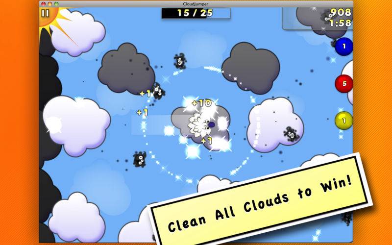 ◆ Land on Grey Clouds to Clean them. Clean all clouds to win!