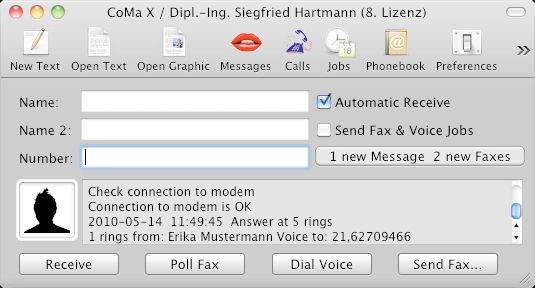 CoMa X is an answering machine, voice, and fax on-demand system. Send and receive faxes; includes a terminal with internal send and receive z-modem. The published price is that of CoMa X Fax. CoMa X is purchased as separate modules: Voice, Fax, Voice and Fax, and Professional. Please see the pricing and registration page for details.