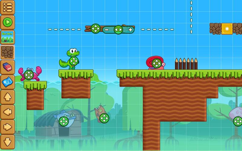 Crocs World Construction Kit features 4 different Settings and numerous tiles that can be used to create your own levels! Share them if you like via internet and let other people play your levels!