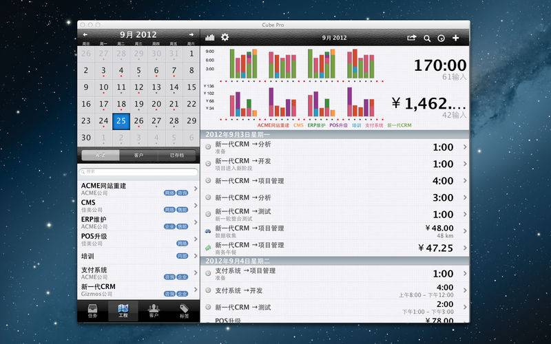 ▪ 华丽的图表——可将您的时间、花销和总成本按天、星期、月份或季度汇总为图表,并按项目、客户或标签进行分组