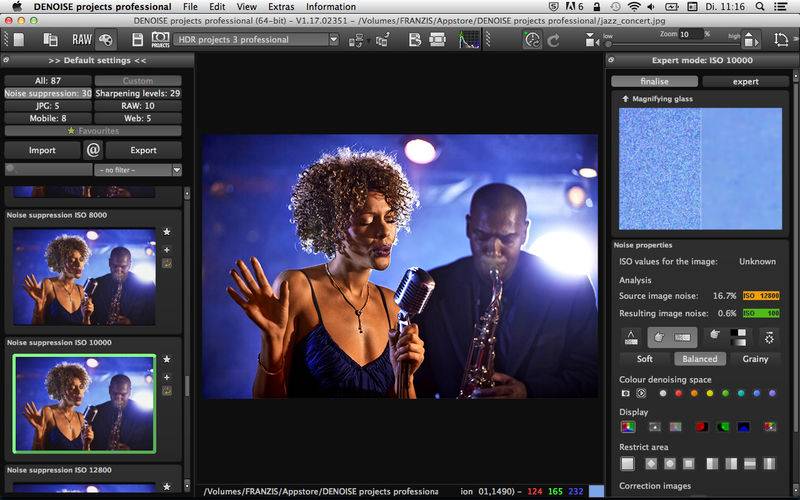 DENOISE projects professional expands your scope as a photographer, enabling you to create fascinating twilight, wildlife, event, underwater and astro images as well as available light shots. DENOISE projects is currently the only available software that removes all seven forms of image noise: luminance noise, colour noise, banding, colour clouds, hot pixels, salt & pepper as well as holes. The completely newly developed Smart Pattern Matching noise technology perfectly removes noise from your images while still keeping the colours, sharpness and finest details.