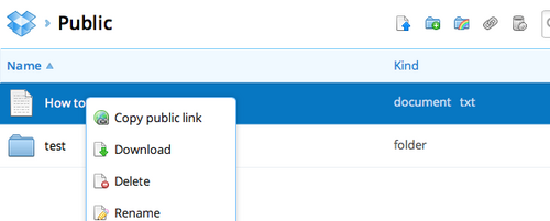 - 首先需要告诉Droplings你的Dropbox id,到Dropbox官网-Public目录下找到任意一个文件,右键激活菜单,选择copy public link。