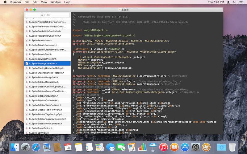 Dumper can class dump any Mach-O executable containing Objective-C runtime information. Be a framework, a third party application or a simple executable Dumper can take it.