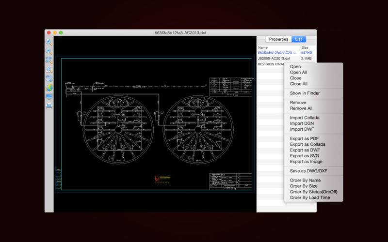 A multifunctional tool for viewing and coverting DXF files in Mac. DXF Lab provides you with a powerful file list, because of it, you can easily manage your DXF files, for example, you can locate your DXF files' storage location, or batch convert DXF files to PDF, or batch convert versions of DXF files and so on.