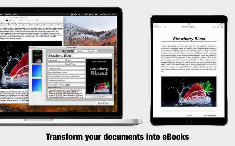 eBookBinder supports several different types of text-files. Next to plain-text files also doc-, odt-, rtf-, rtfd-, html-, webarchive-, Textbundle- and Textpack.files are supported by eBookBinder. But that's not all!