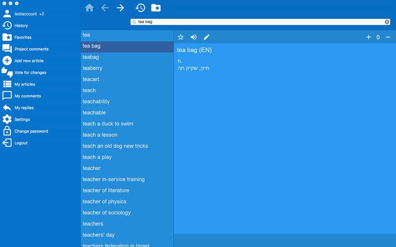This is English - Hebrew dictionary. The dictionary works offline, search is very fast, and the application has online social features.