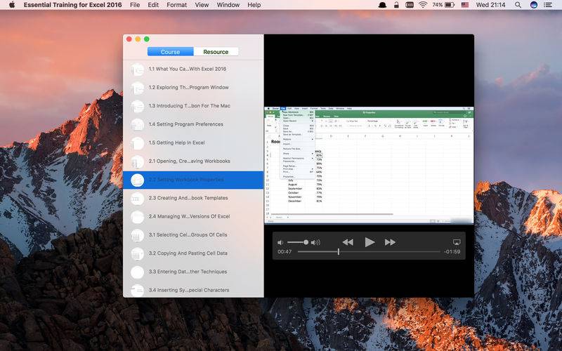 Learn everything you need to master the Mac 2016 version of the world's most popular spreadsheet program. We provides a comprehensive overview of Excel for Mac 2016, including manipulating workbook and cell data, using functions, printing worksheets, and collaborating with others. In the last half of the course, he covers more complex techniques, such as summarizing data with charts, working with external data, adding images and shapes, and automating routine tasks.