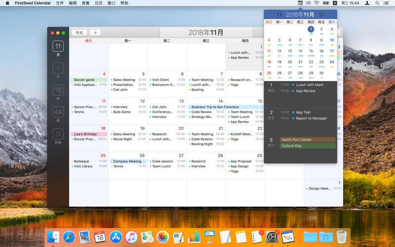 FirstSeed Calendar 是一款能同时处理日程和提醒事项的优秀 app,它具有以下特别功能: