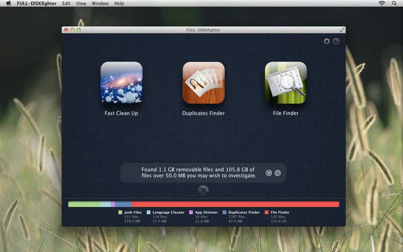 * 释放宝贵的硬盘空间 * 用 FULL-DISKfighter 删除浪费资源的重复文件,释放宝贵的空间 * 用 FULL-DISKfighter 清理整个磁盘容易吗?简单得像1-2-3,问题解决! FULL-DISKfighter Mac是我们最新发布的产品,帮助清理您Mac电脑中的垃圾文件。强大的三合一功能,帮您轻松查找出占用系统空间的垃圾文件和不再使用的文件,同时能计算出Mac电脑中已被占用的空间(以及删除您不再需要的文件);此外,还能帮您找出电脑中所有重复的文件。
