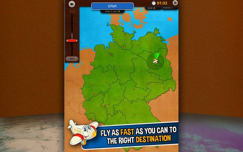 GeoFlight Germany is a fun, addictive, challenging and educational geography game that will push your brain to its limit! Soar through the sky and learn the names and locations of provinces, cities and capitals in a game like no-other!