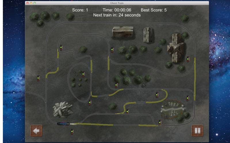 Trains will move around the track, change the junctions on the track to alter each trains path, the aim is to stop the trains from crashing into each other, it’s annoyingly addictive.