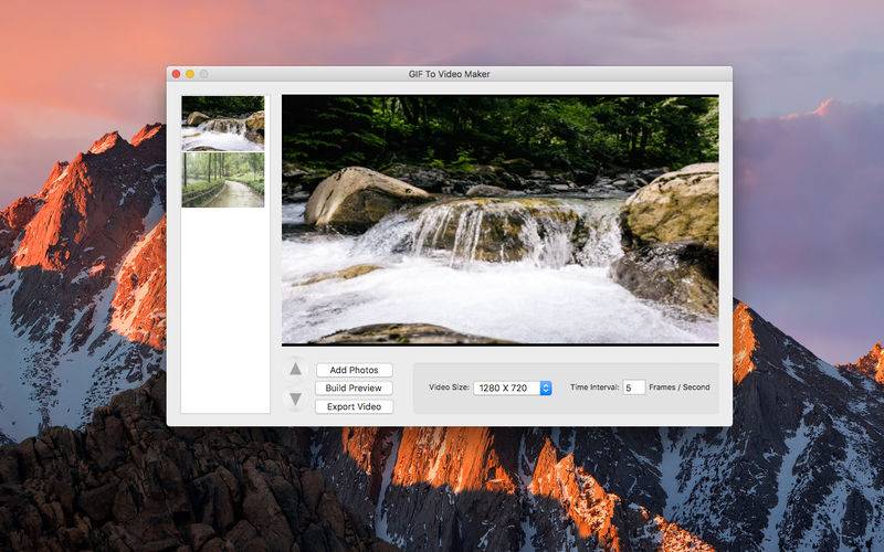 Upload one or multiple GIF files and turn them into a video. GIFs can be reordered by using the up and down arrows. Select the video size and set the frame rate to adjust the speed. Use the build preview button to see the video before you export.
