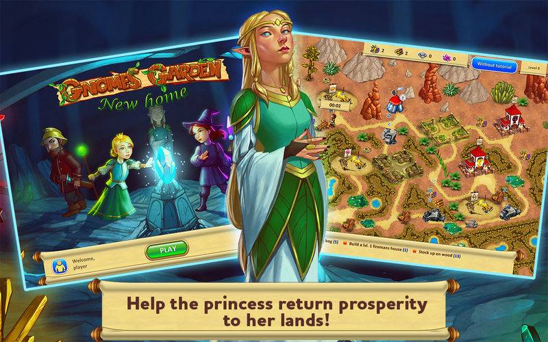 Get ready for adventure through an unknown land full of secrets and mysticism in the thrilling, casual fantasy strategy game Gnomes Garden: New home. More than 40 packed levels, tons of different structures, increasing difficulty, a fun plot, strange magical worlds, and captivating gameplay for any age all await you inside. Construct buildings, manage resources, fix ancient mechanisms, use powerful magic and restore ancient magic gardens. And with simple controls and clear training, you'll get the basic controls down in no time.