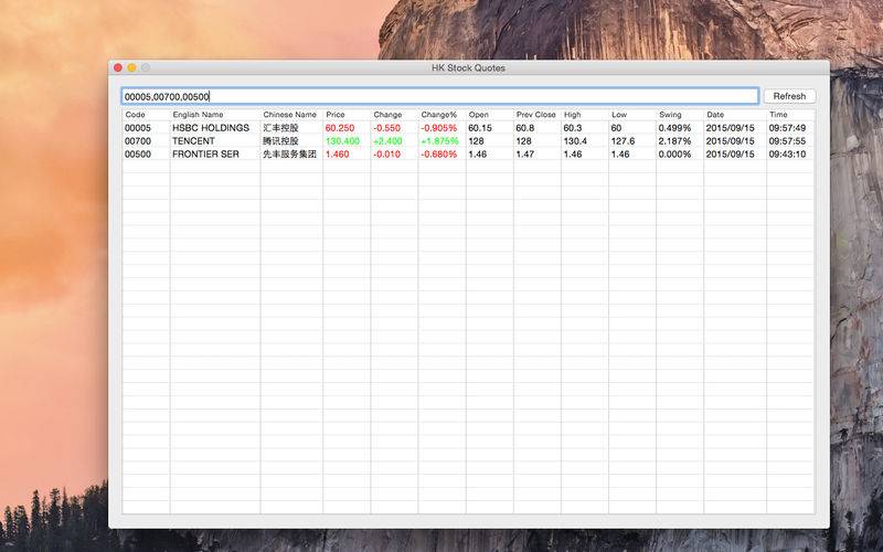 Stock quotes for Hong Kong stock market. It's very simple to use, just enter the stock codes which you are interested in. By the way, it remembers what you entered last time :) ** network connection required **