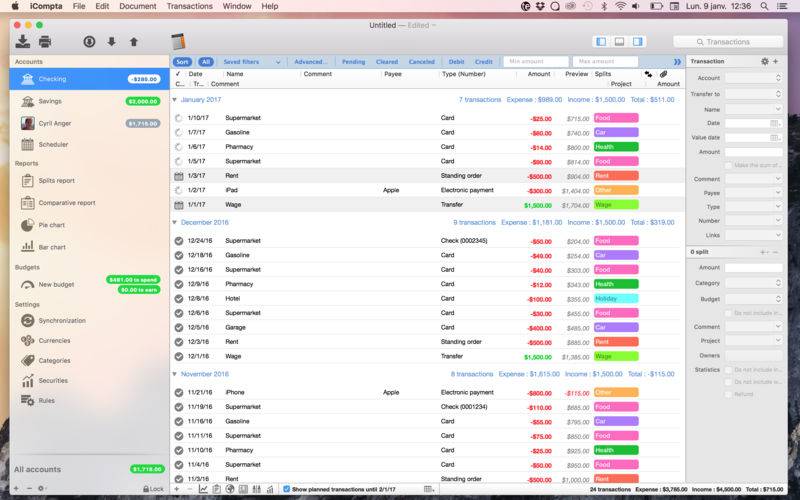 iCompta is an application that lets you manage your accounts with ease. Keep track of your income and expense, schedule your bills, stay in line with your budget and finally know where all your money goes thanks to beautiful charts.