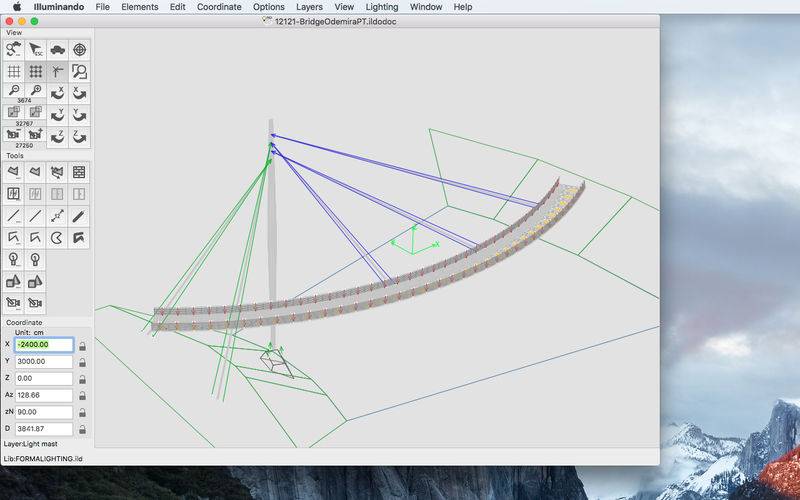 Illuminando works in metric or imperial units, runs on Apple computers running OSX fully respecting the specific technology and implements OpenGL for rendering.