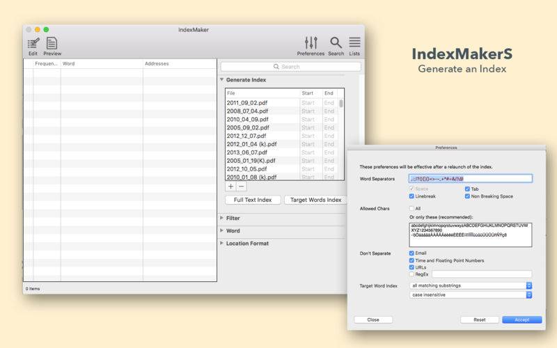 Create a index of all words in the document(s) (full text index) or just for some specified words (target word index).