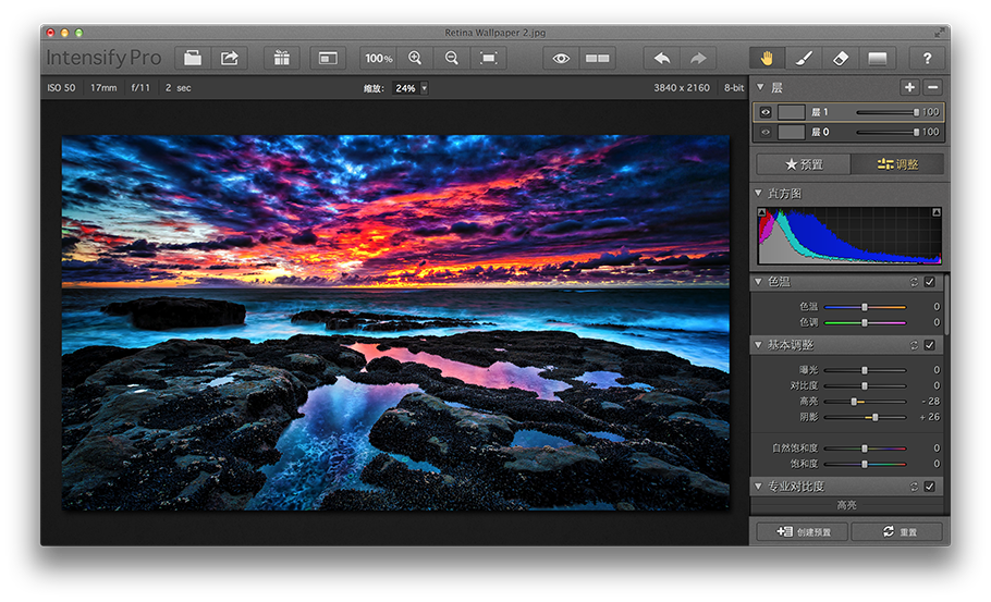 总的来说,Intensify Pro 是个既不算轻量级、也不算绝对专业的「图像处理」应用,因此无论对于新手用户还是专业用户,都是款足够理想的工具。您可以 点击这里 进入官方支持页面,深入了解用户界面;若网络允许,也可以 点击这里 观看官方 Vimeo 视频教程