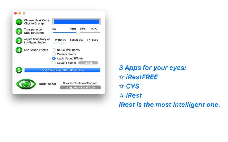 iRest is a MUST HAVE app if you are in front of your Mac more than 4 hours daily, have dry eye or other eye problems, or if you just want to save your vision!