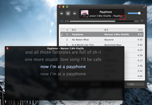 【提示:可以在“偏好设置”中修改歌词字体、颜色】
