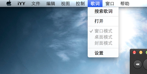同时作为一款 Mac 平台上老牌的国产音乐软件,iYY也是款带有“音乐盒子”的播放器,你可以通过软件自身下载其在互联网上嗅探到的来自不同来源的音乐。截止2014年5月1日,iYY最新版本 4.7.2 可以由用户自行选择的来源有“Sougou音乐”、“QQ音乐”、“虾米音乐”、“360音乐”。