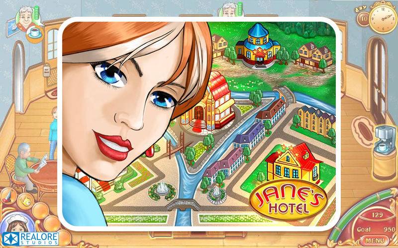 Help Jane make her dream come true and build a beautiful 5 star hotel in Jane`s Hotel! You begin with a small 2 star hotel at the outskirts of town and work your way to the top by upgrading accommodations and achieving an excellent reputation. Keep an eye on customer moods and make them happy by building a golf course, serving them exquisite drinks and good meals, or simply cleaning their room.