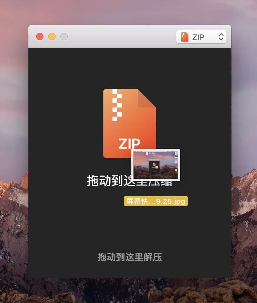 注意在你拖动文件或压缩包的时候要注意解锁工作区域是融合在一起的,也就是上面是压缩,底部是解压缩,但是我感觉这两个区域区分的不是很明显。