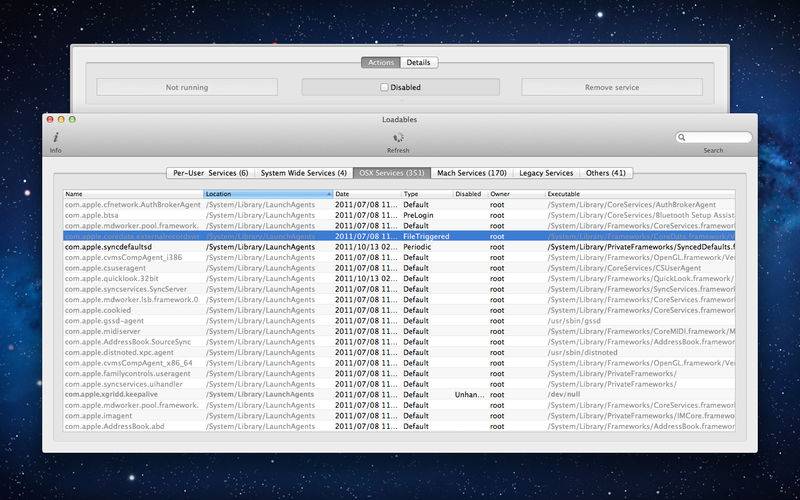 ** The ability to stop processed depends of the authorization level of the user running Loadables , caution should be exercised when stoping OSX services that could be critical to the operating system.
